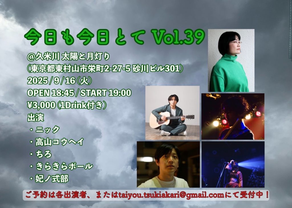 定員16名(予約優先)taiyou.tsukiakari@gmail.com