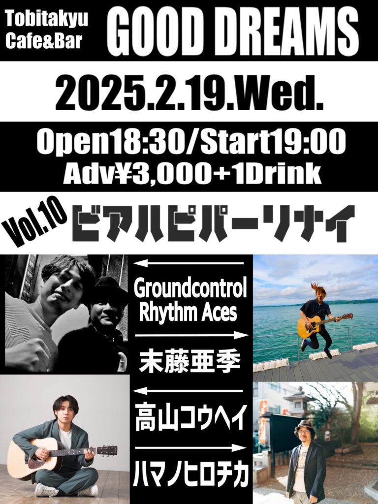 出演:Groundcontrol Rhythm Aces、末藤亜季、ハマノヒロチカ、高山コウヘイ(出番20:25〜)