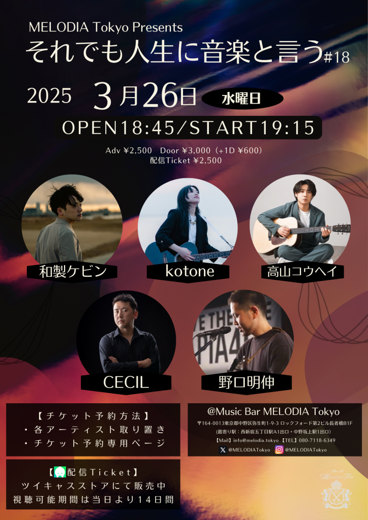 Act:和製ケビン/kotone/高山コウヘイ(20:15~)/CECIL/野口明伸