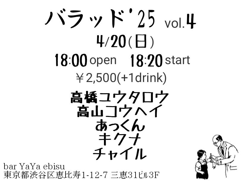 OPEN 18:00 / START 18:20¥2,500 + 1drink