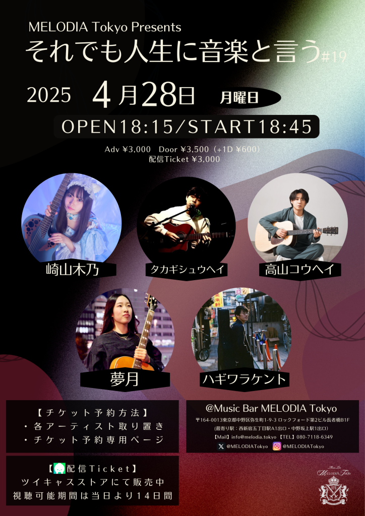 Act:崎山木乃/タカギシュウヘイ/夢月/ハギワラケント/高山コウヘイ(トリ21:05~)